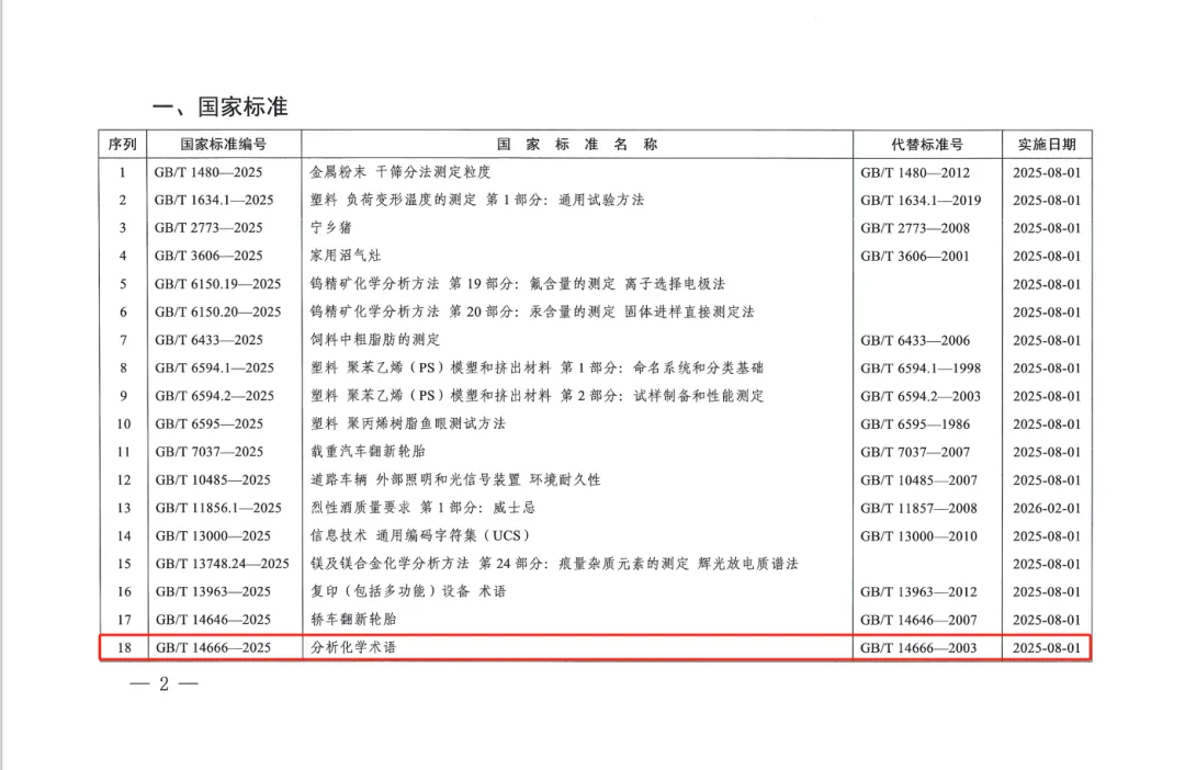 近日,中華人民共和國(guó)國(guó)家標(biāo)準(zhǔn)公告2025年第2號(hào),由浙江省化工產(chǎn)品質(zhì)量檢驗(yàn)站有限公司(浙化檢測(cè))作為第一起草單位主持制定的GB/T14666-2025《分析化學(xué)術(shù)語(yǔ)》國(guó)家標(biāo)準(zhǔn)正式頒布。這項(xiàng)歷時(shí)兩年、凝聚行業(yè)智慧的重量級(jí)標(biāo)準(zhǔn),標(biāo)志著我國(guó)分析化學(xué)領(lǐng)域術(shù)語(yǔ)規(guī)范化邁入新紀(jì)元。