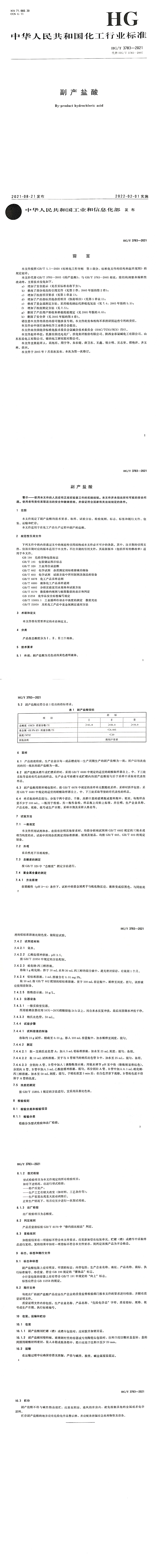 HG/T 3783-2021《副產(chǎn)鹽酸》,已于2021年8月21經(jīng)國家工業(yè)和信息化部發(fā)布,并已于2022年2月1日起實(shí)施。